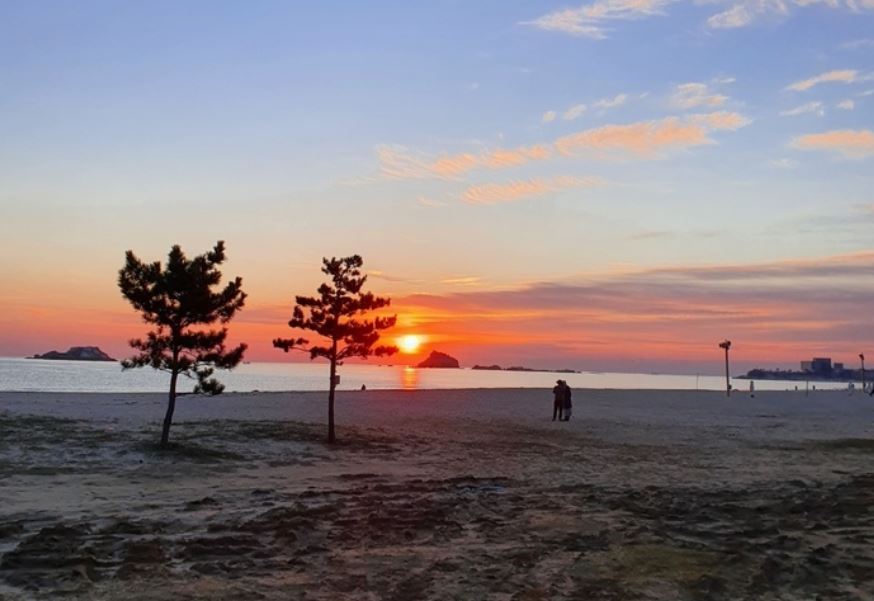 속초에서 17km 거리의 넓고 긴 해변으로 시야를 방해하는 것 없이 여유로운 일출을 볼 수 있습니다. 가까이서 보는 것도 좋지만 따뜻하게 실내에서 보고 싶은 분들은 주변에 오션뷰 숙박 시설이 구축되어 있어 편안하게 해돋이를 볼 수 있습니다.
