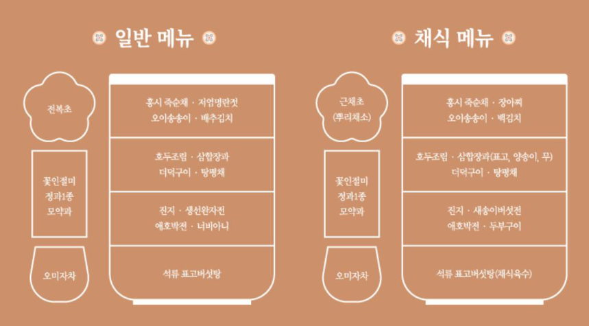 음식 구성은 일반메뉴와 채식 메뉴 두가지로 준비되어있어 채식을 희망하시는 분은 행사일 3일 전 콜센터를 통해 사전 신청 가능합니다. 채식 메뉴 신청 방법은 아래에서 말씀드릴 예매 방법과 함께 안내해드리겠습니다.