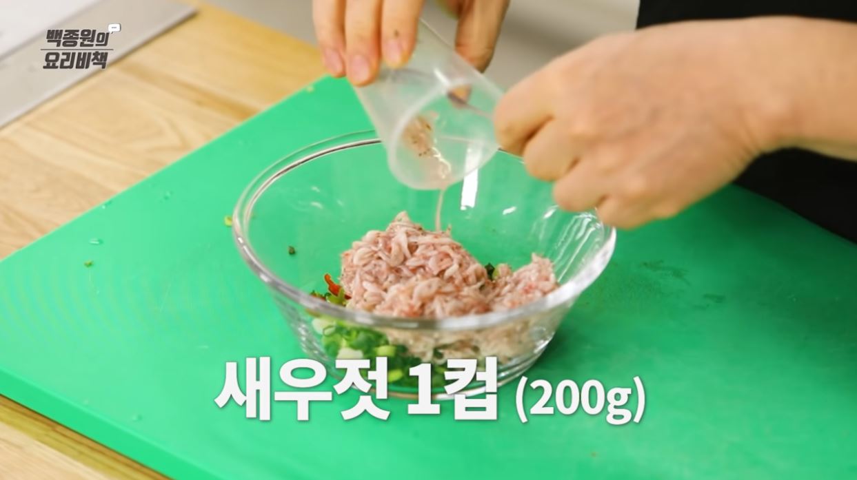 3. 새우젓 1컵을 넣고 섞어줍니다.