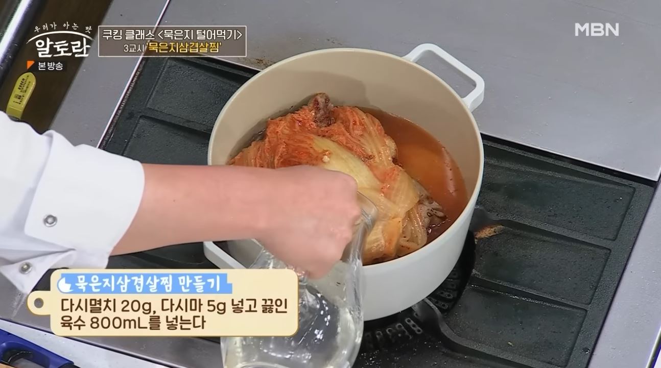냉장고에 작년에 받은 김장김치가 아주 맛있게 익었습니다. 잘 익은 김치로 만들면 밥도둑이 되는 김치찜을 만들기로 했습니다. 묵은지가 아니어도 괜찮지만 푹 익은 신 김치로 사용해 주시면 됩니다. 갓김치나 총각김치로 하셔도 맛있습니다. 아직 익지 않은 김치는 맛이 만족스럽지 않을 수 있습니다. 반대로 쿱쿱한 냄새가 날 정도로 많이 묵은 김치는 물에 씻어서 속을 털어낸 후 사용합니다. 저는 알토란 천상현 셰프의 레시피로 감칠맛 폭발하는 묵은지 돼지고기 김치찜을 만들어 봤습니다. 셰프의 팁까지 얹은 레시피로 묵은지를 활용한 맛있는 저녁 밥상을 만들어보시기 바랍니다.