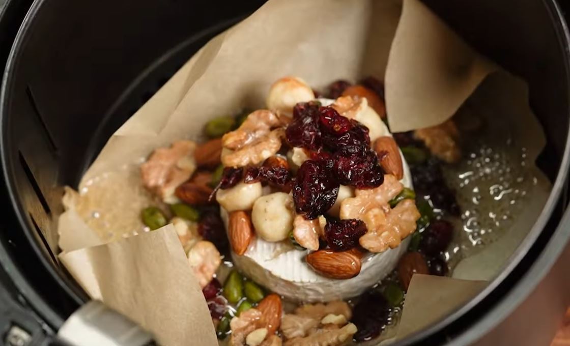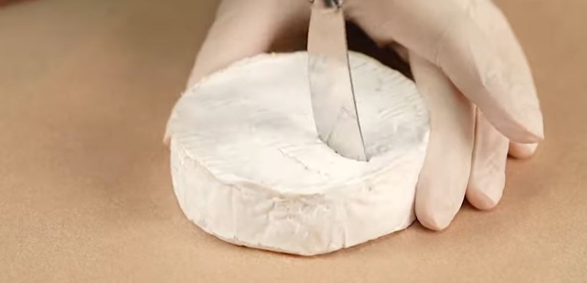1. 종이호일 위에 브리치즈를 올려놓고 상단을 포크나 나이프로 콕콕 찔러줍니다.