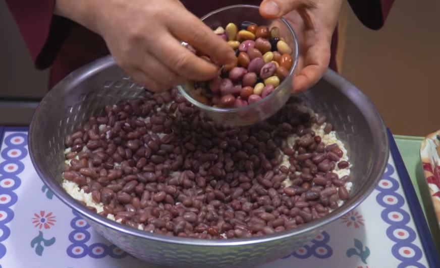 4. 강낭콩, 쥐눈이콩, 은행, 밤을 넣어줍니다.