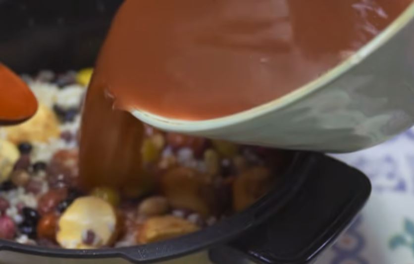 8. 물을 잡곡이 잠길 정도만 자작 자작하게 추가해서 채워줍니다.