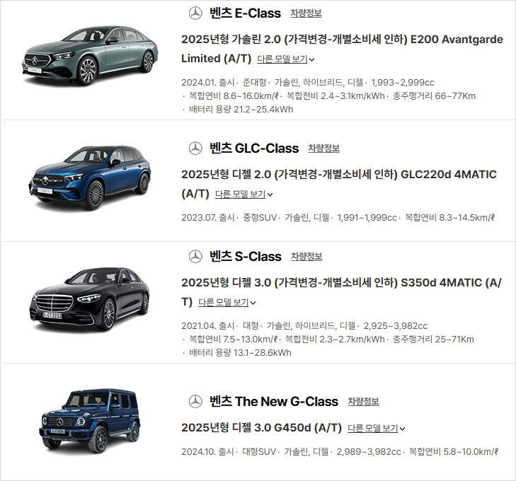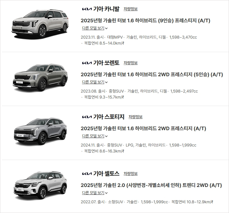 - SUV 차량 (싼타페, 쏘렌토): 패밀리카 및 사업용으로 수요 많음