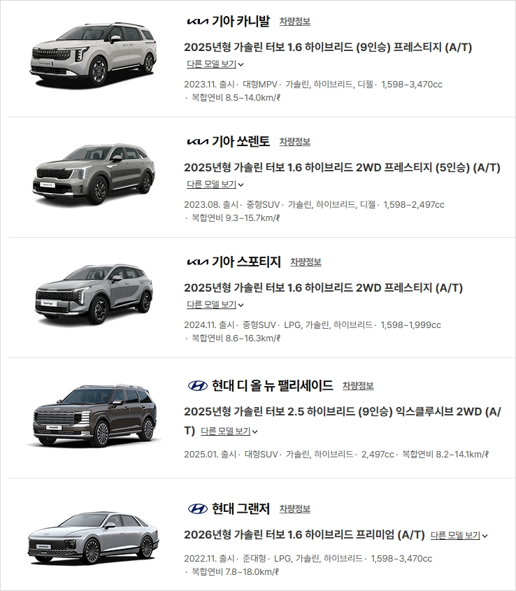 - 하이브리드 차량: 연료비 절감 효과 커서 장거리 운전자에게 인기