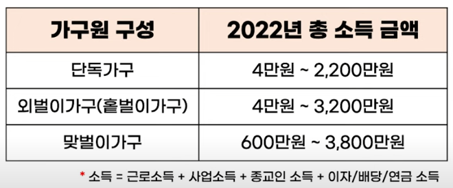 먼저 내가 어느 가구에 속하는지 그리고 작년에 내 총 소득 금액이 어느 정도이신지 확인하셔야 합니다. 단독가구는 2,200만원 외벌이 가구는 3,200만원 맞벌이 가구는 3,800만원 기준입니다. 이 금액들 미만으로 소득이 잡혔던 분들은 대상자라고 보시면 되겠습니다. 여기서 소득을 보실 때는 급여로 받은 근로소득와 더불어 사업소득, 종교인 소득, 이자/배당/연금 소득을 모두 합하셔야 합니다. 그런데 여기서 끝이 아니고 소득 조건 말고도 재산 조건도 같이 봐야 합니다. 왜냐하면 급여는 적지만 재산이 많으신 분들이라면 굳이 근로장려금을 받으실 필요가 없으니 따라서 앞서 말씀드린 소득 조건에 부합되시더라도 보유한 재산이 기준 금액 이하여야지만 근로장려금을 받으실 수 있습니다. 지금 현재의 재산 기준 금액은 2억 4천입니다. 여기서 부채는 따로 차감하지 않는다는 점도 챙기셔야겠습니다.