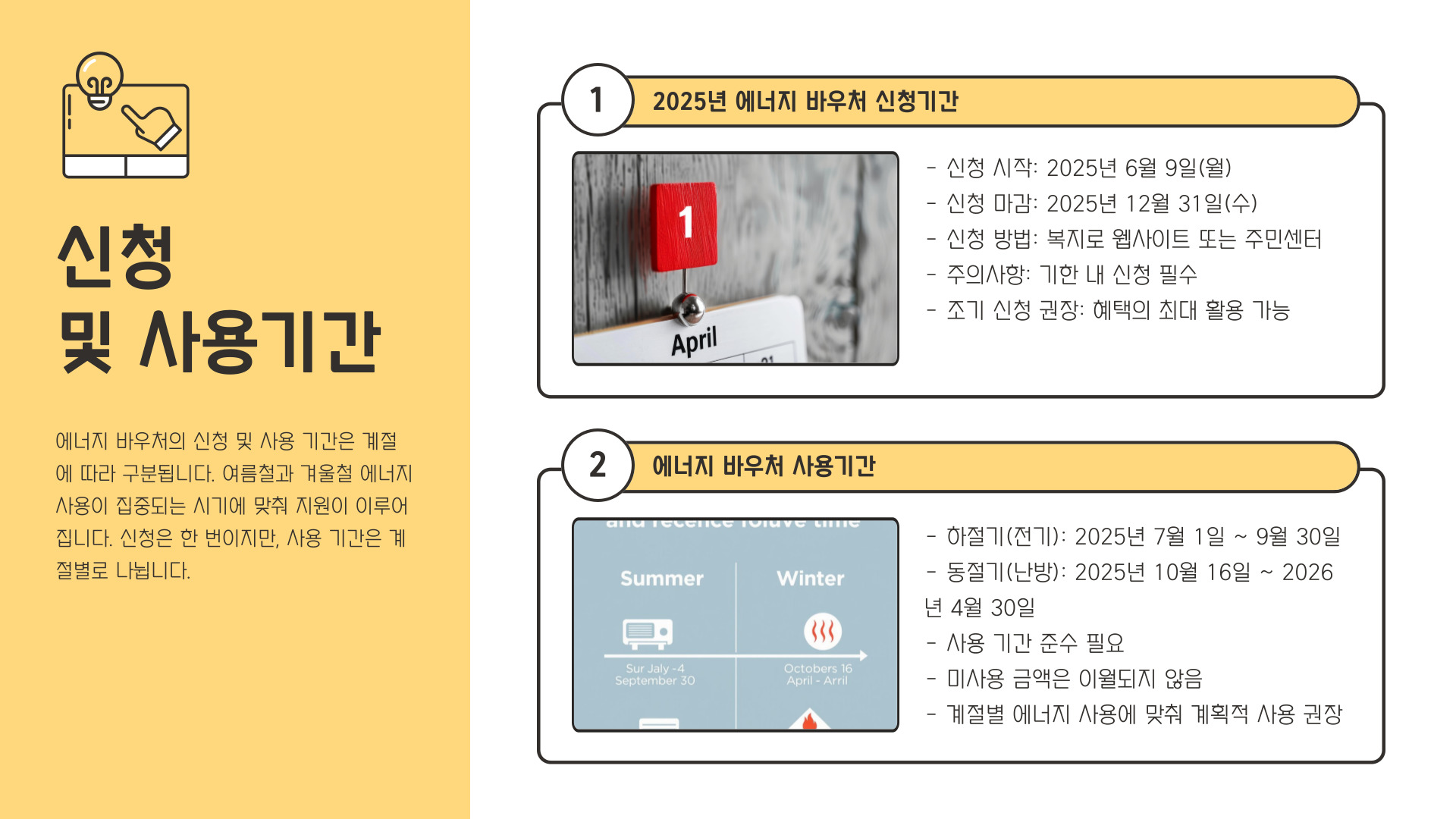 - ✔ 동절기 사용기간이 길기 때문에 지금 신청해도 유용합니다